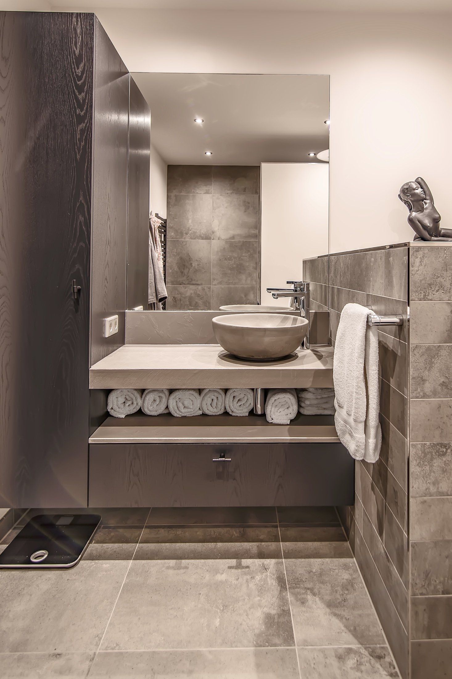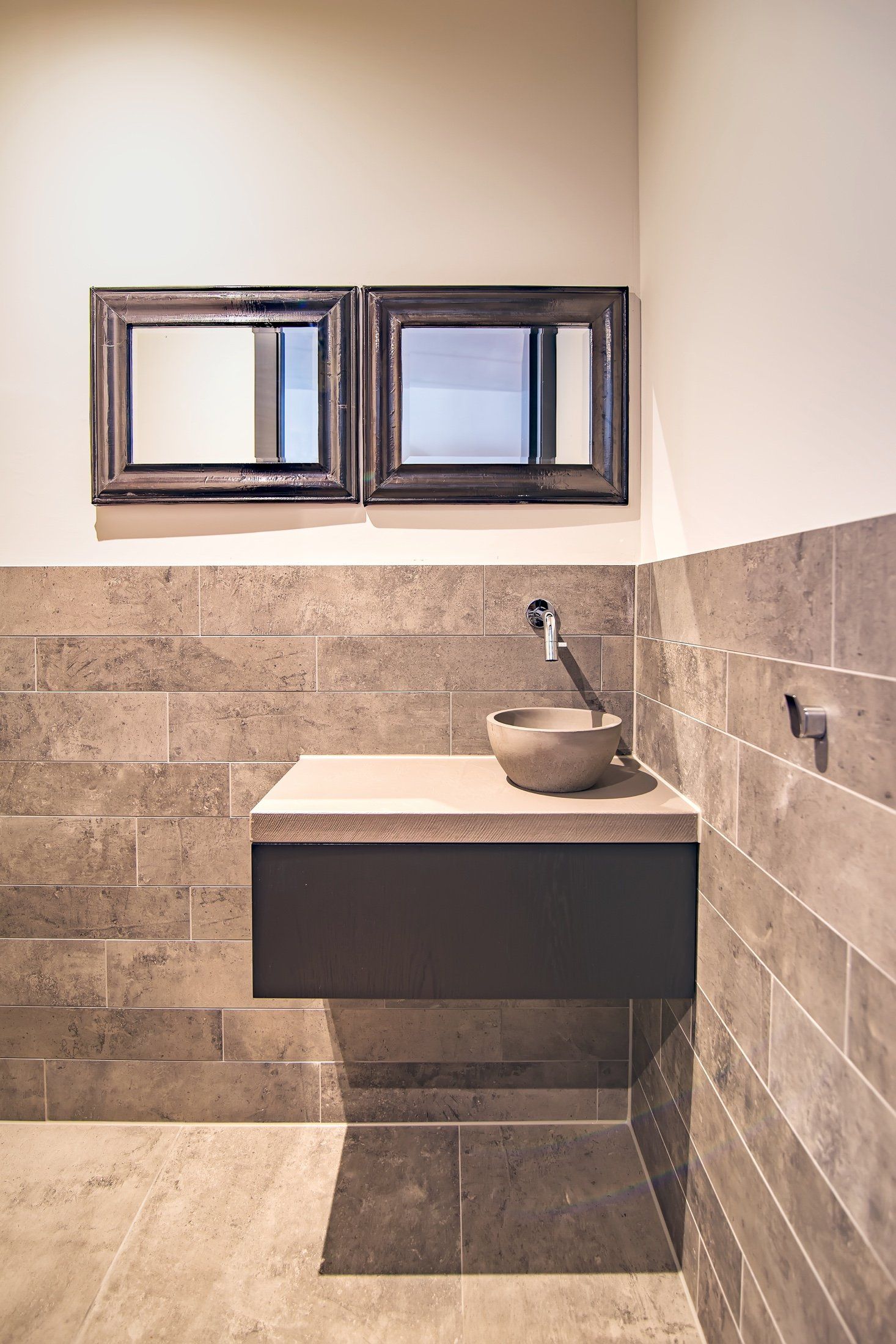 Een stijlvol en warm ontworpen badkamer in Soest.