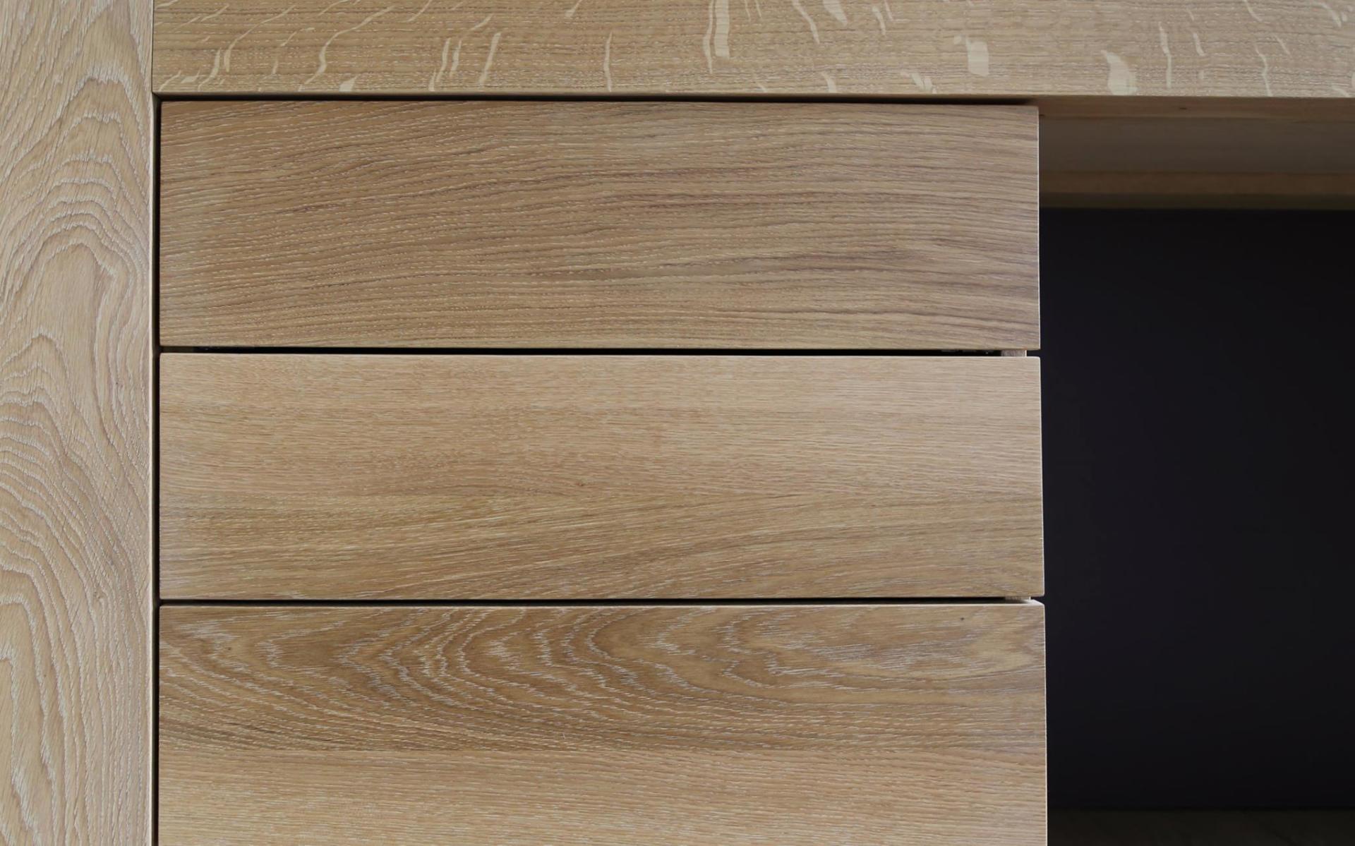 Dit bureau is gemaakt van massief eikenhout en geolied in de kleur white 5%.