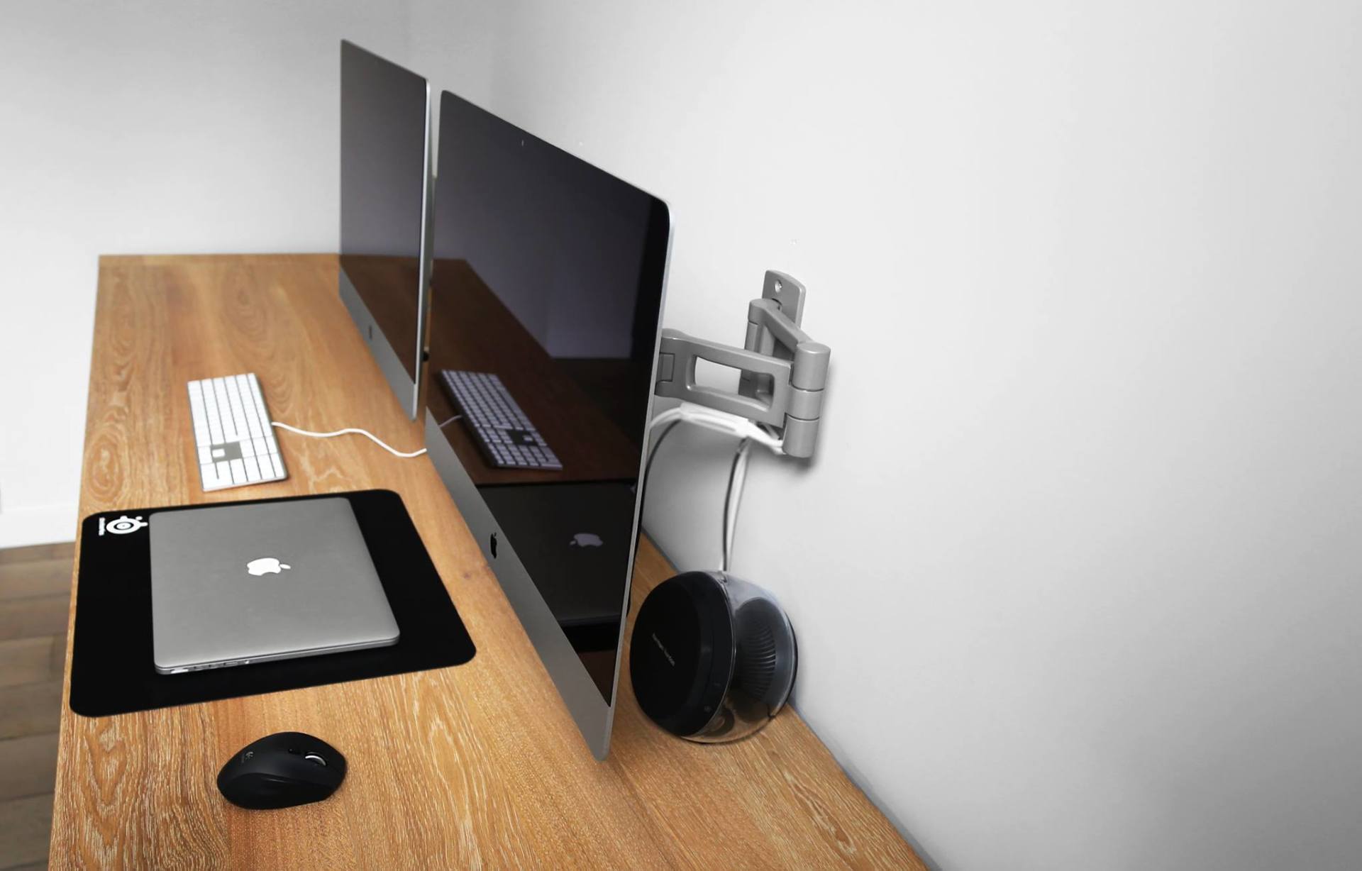 In het blad zit een RVS frame verwerkt die het bureau van ruim 3,5m een goede stabiliteit geeft.