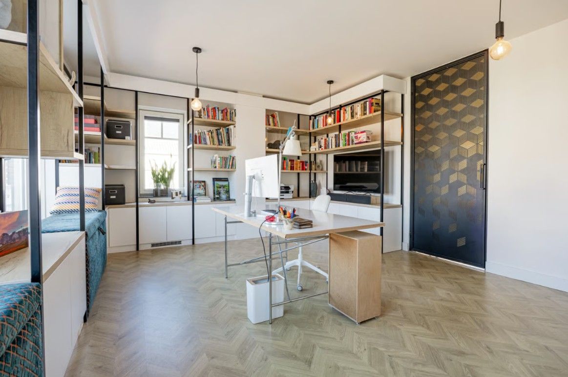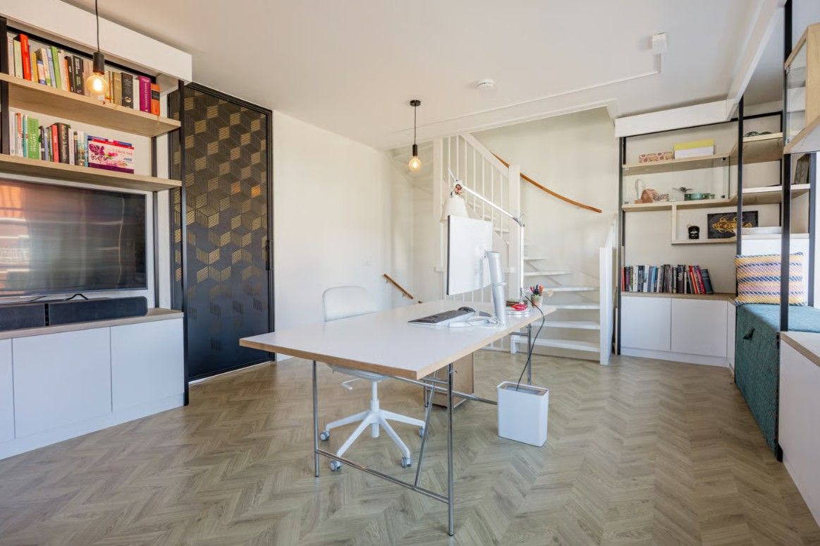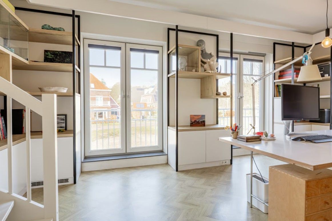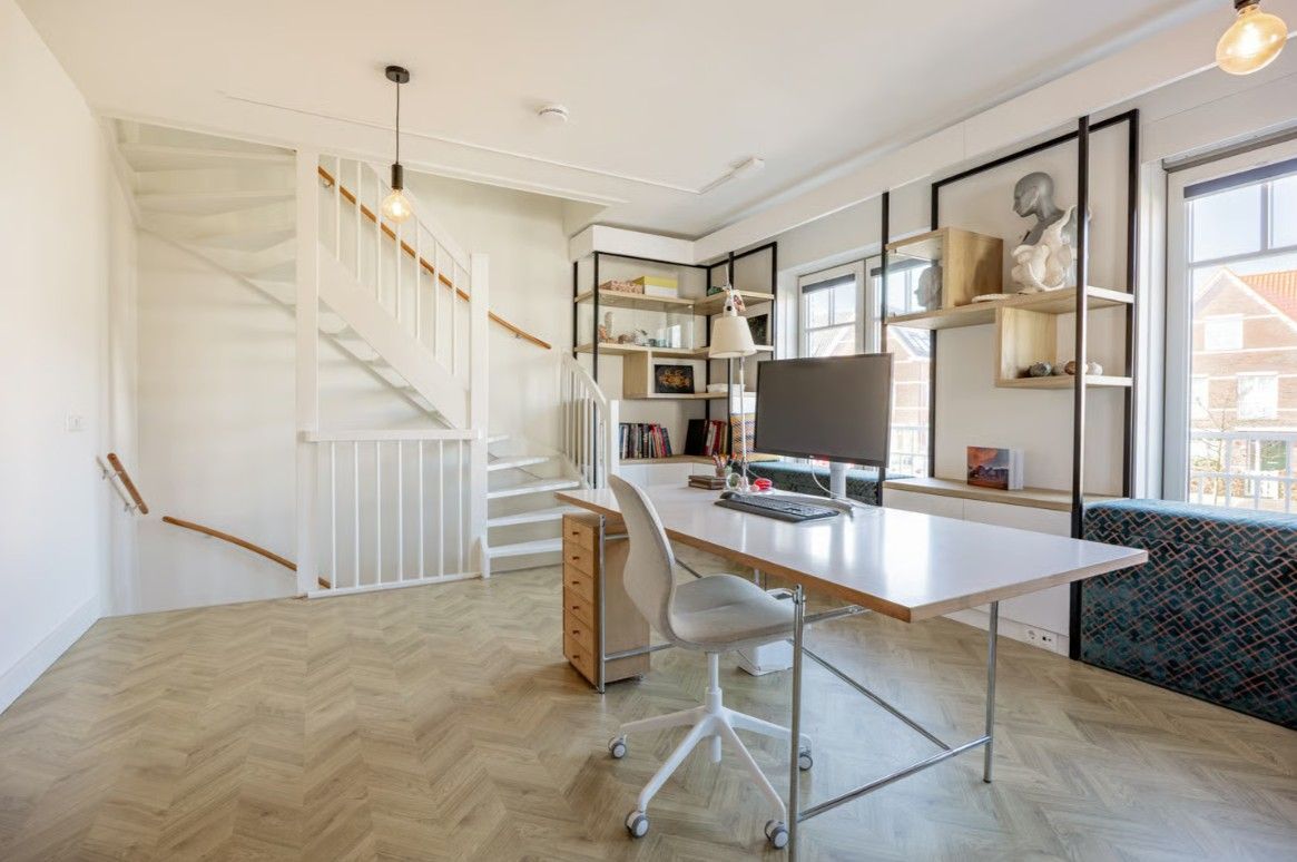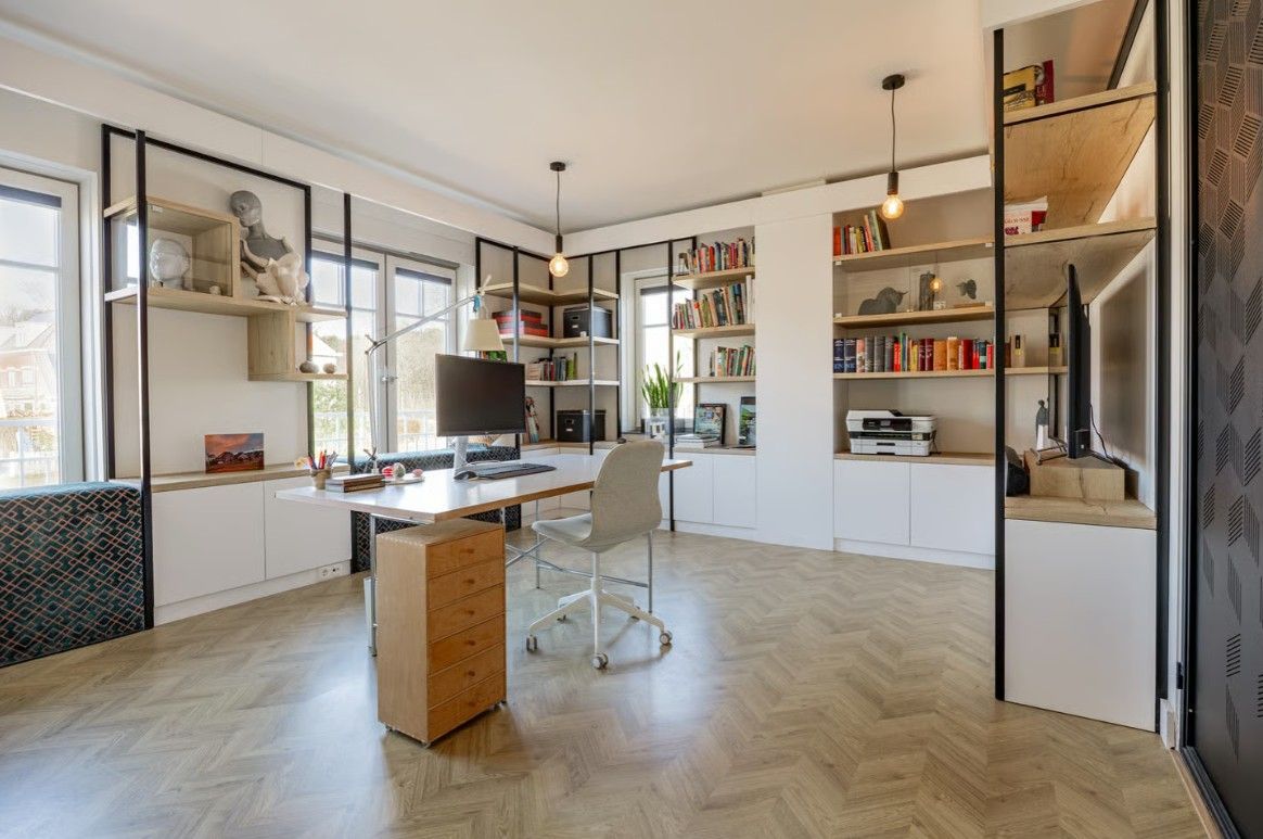 Minimalistisch én functioneel. De combinatie van zwart staal en gespoten MDF geeft dit kantoor een high-end uitstraling. Elk detail klopt: van de verrijdbare loungeplekken in de vensterbank tot de verborgen LED-verlichting die het plafond optisch laat zweven. Een inspirerende ruimte waar elk element zorgvuldig is afgewerkt.