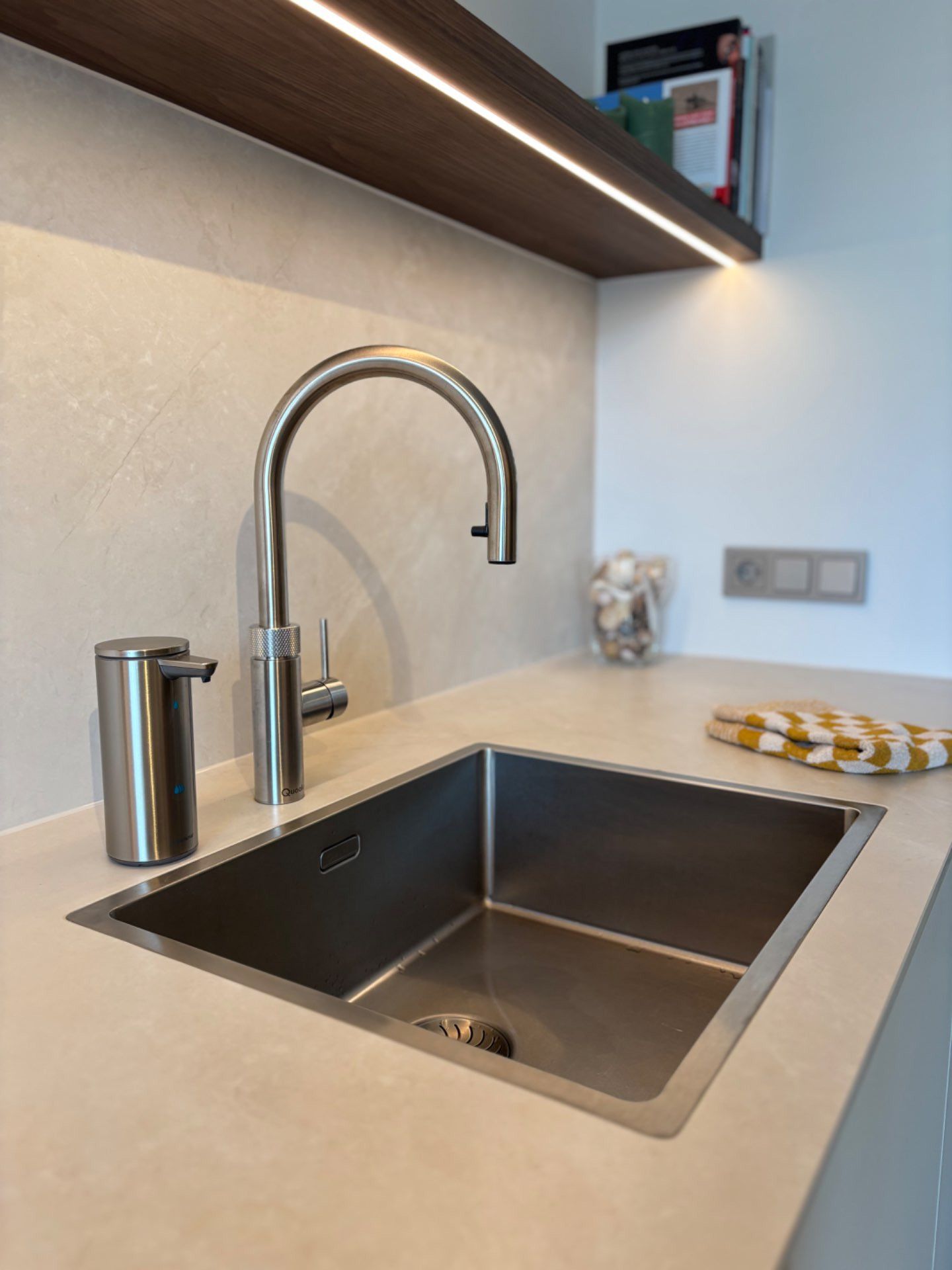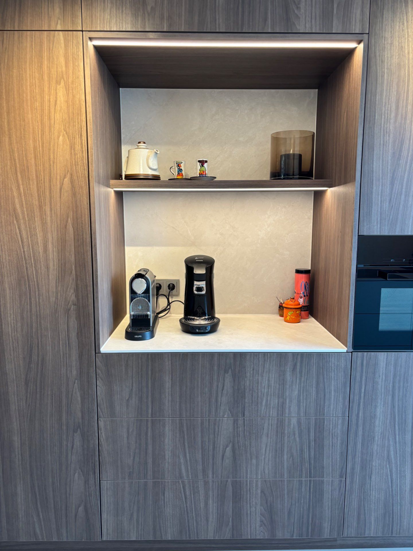 Eigentijds, warm en heerlijk licht. Het karaktervolle notenhout geeft deze keuken direct sfeer, terwijl de rustige basis zorgt voor een tijdloze uitstraling. Een heerlijke open ruimte waar design en gezelligheid samenkomen!