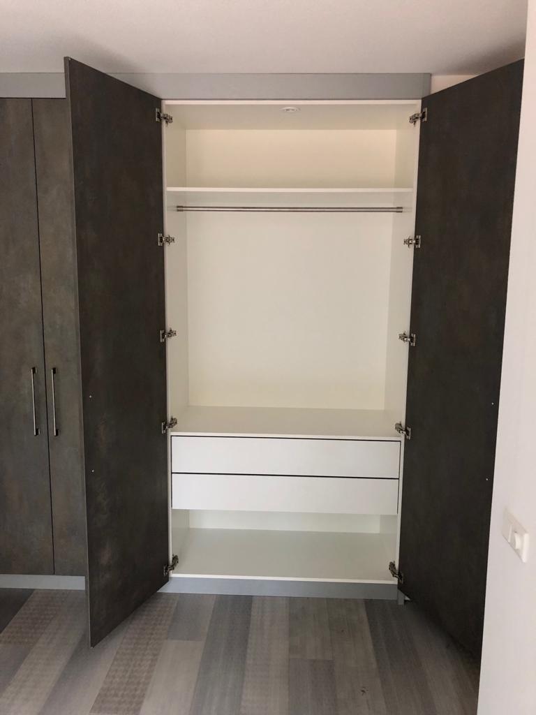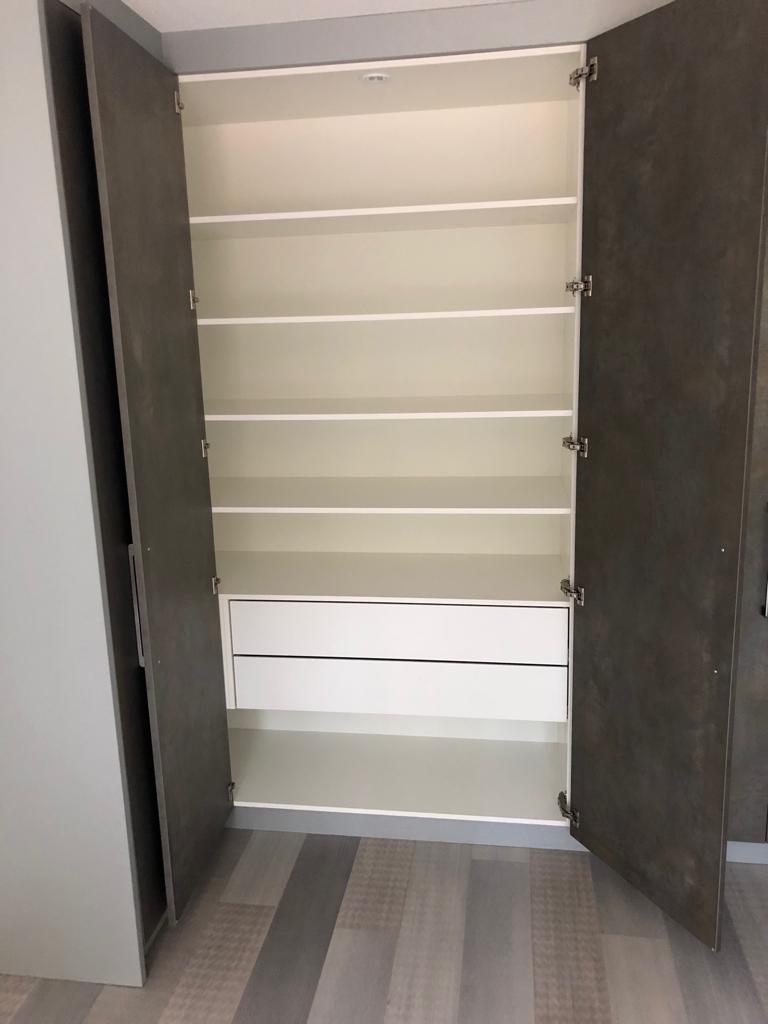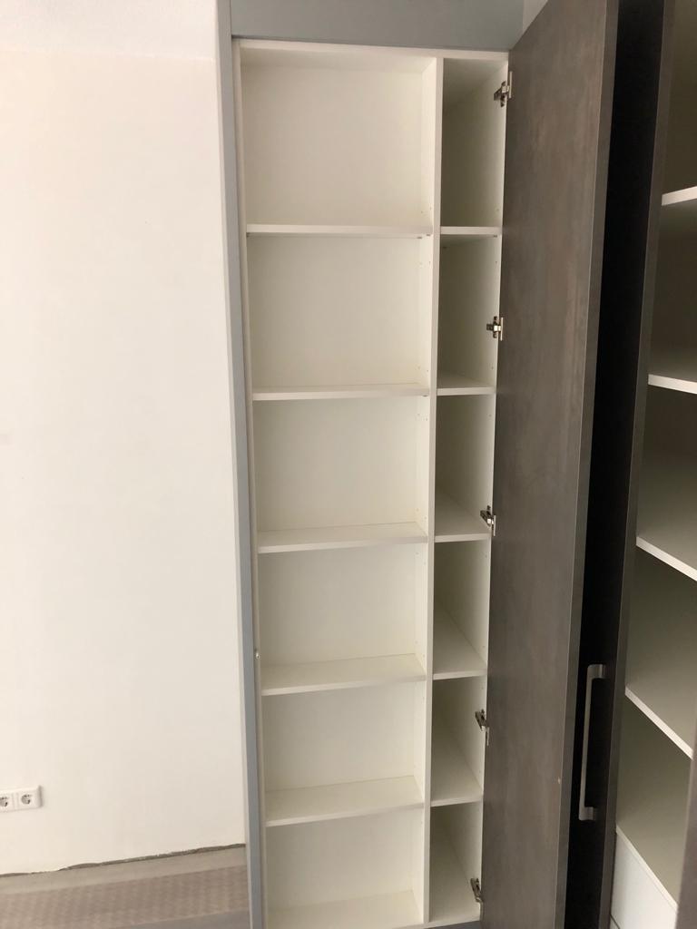In deze kast hebben wij een bestaande pilaar weggewerkt, waardoor de ruimte niet verloren gaat maar gewoon gebruikt kan worden.