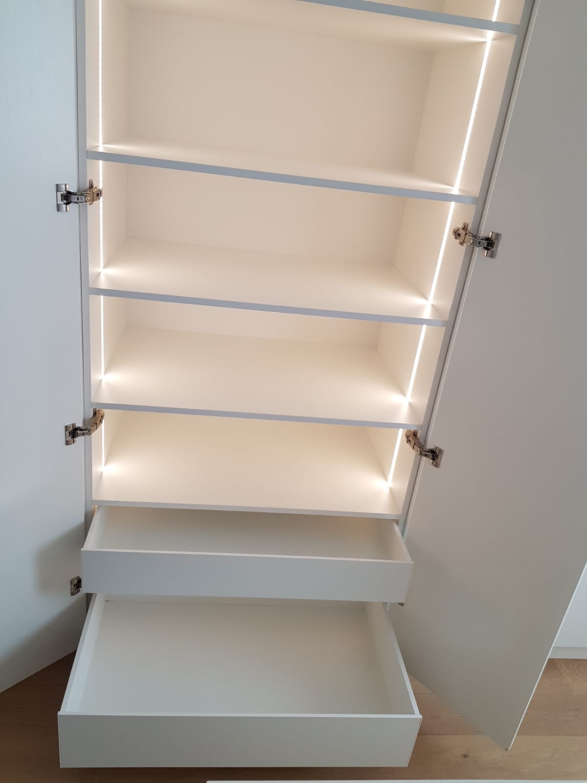 In de zijkanten van de kast is er led verlichting ingefreesd, deze gaat aan op het moment dat u de deuren opent.