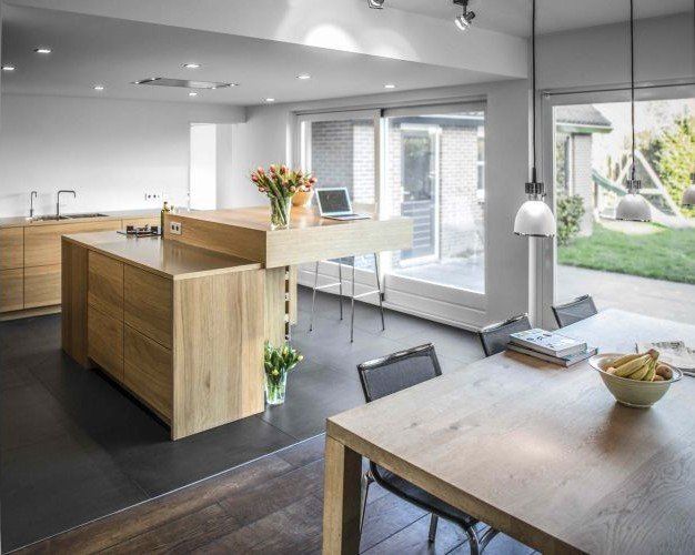 Keukens zoals deze in Soest mogen eigenlijk geen keuken meer heten. Zoveel specifieke wensen erin verwerkt maakt het tot een multifunctionele verblijfplek om te genieten.