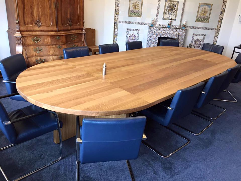 Een stijlvolle tafel in de vergaderruimte van het gemeentehuis in Spakenburg.