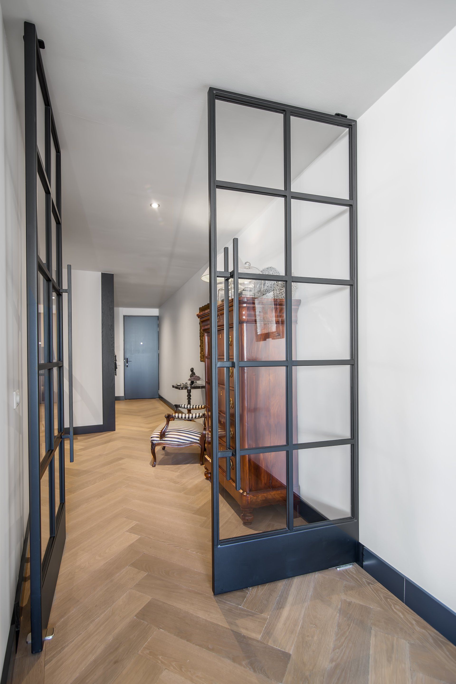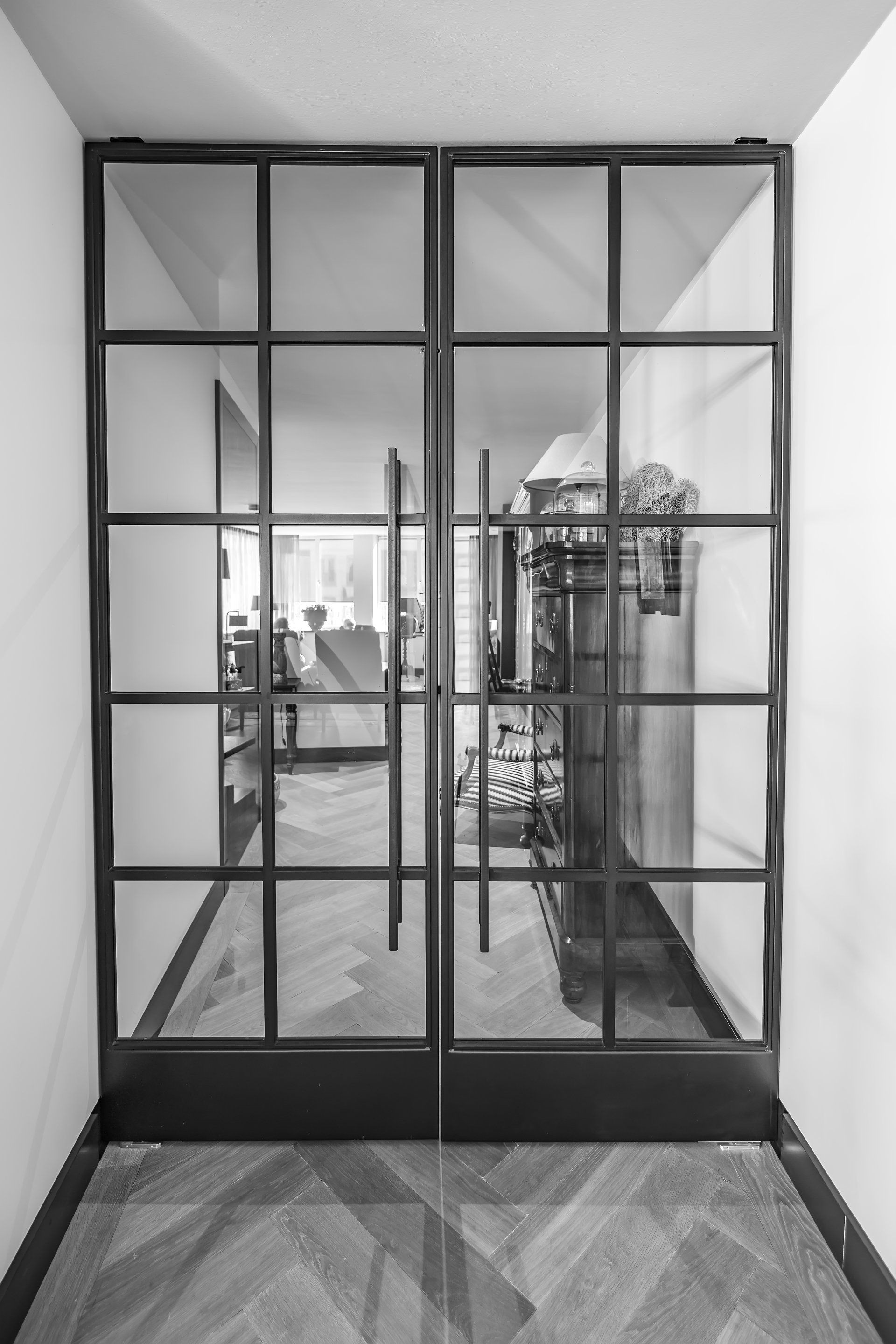 Deze taatsdeuren zijn gemaakt van staal, gepoedercoat in mat zwart en zijn in elk gewenst ontwerp te krijgen. De stalen deuren kunnen worden gemaakt als taats (draai) deuren en schuifdeuren.