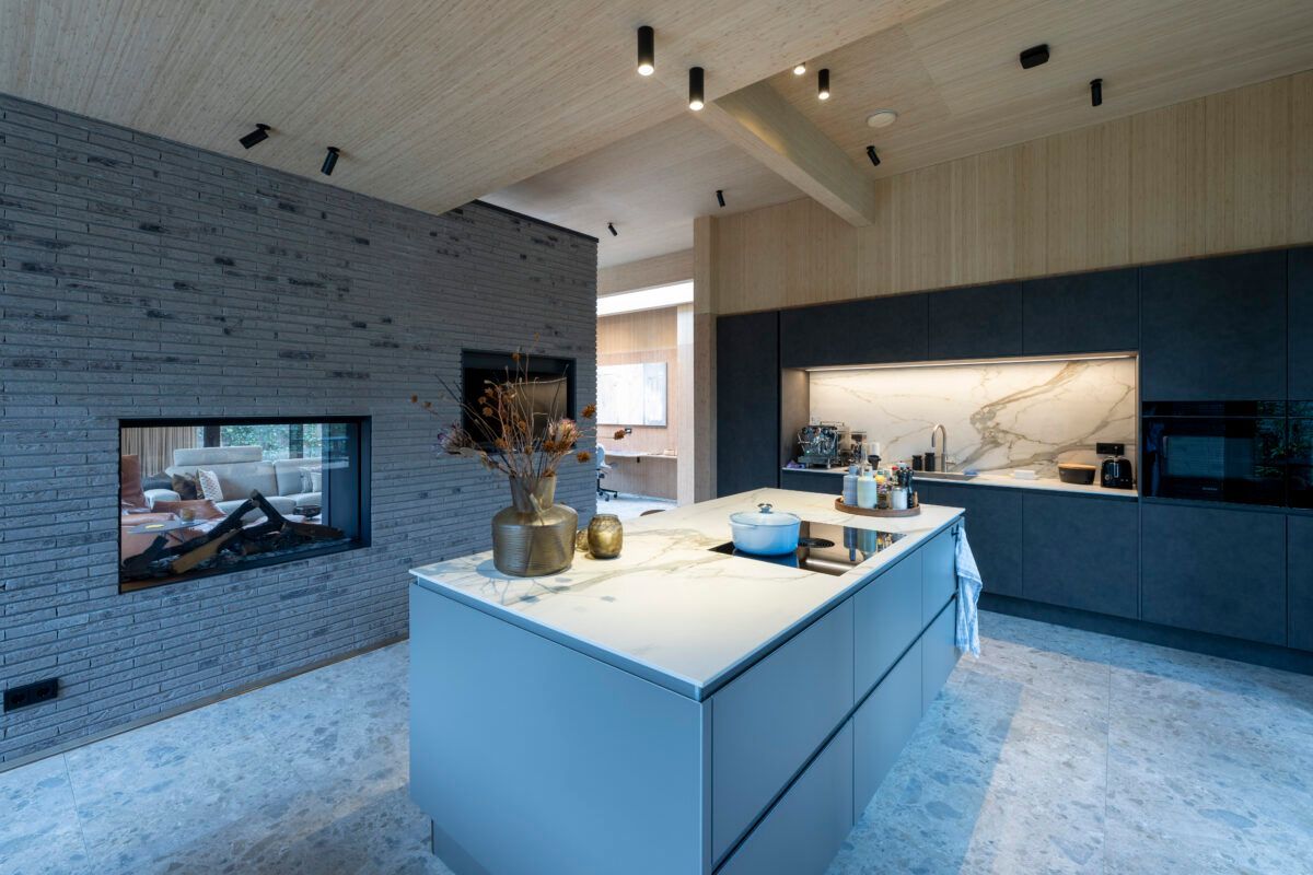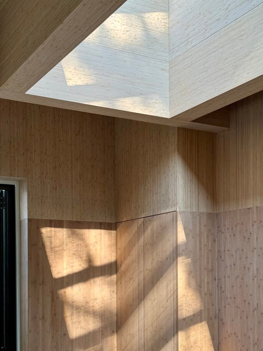 Natuurlijk wonen in optima forma. Het samenspel tussen de twee tinten bamboe creëert een uniek ritme in het interieur. Deze duurzame woning biedt een oase van rust door alle techniek, werkplekken en opslag onzichtbaar te verwerken in de bekleding. Puur, functioneel en sfeervol.